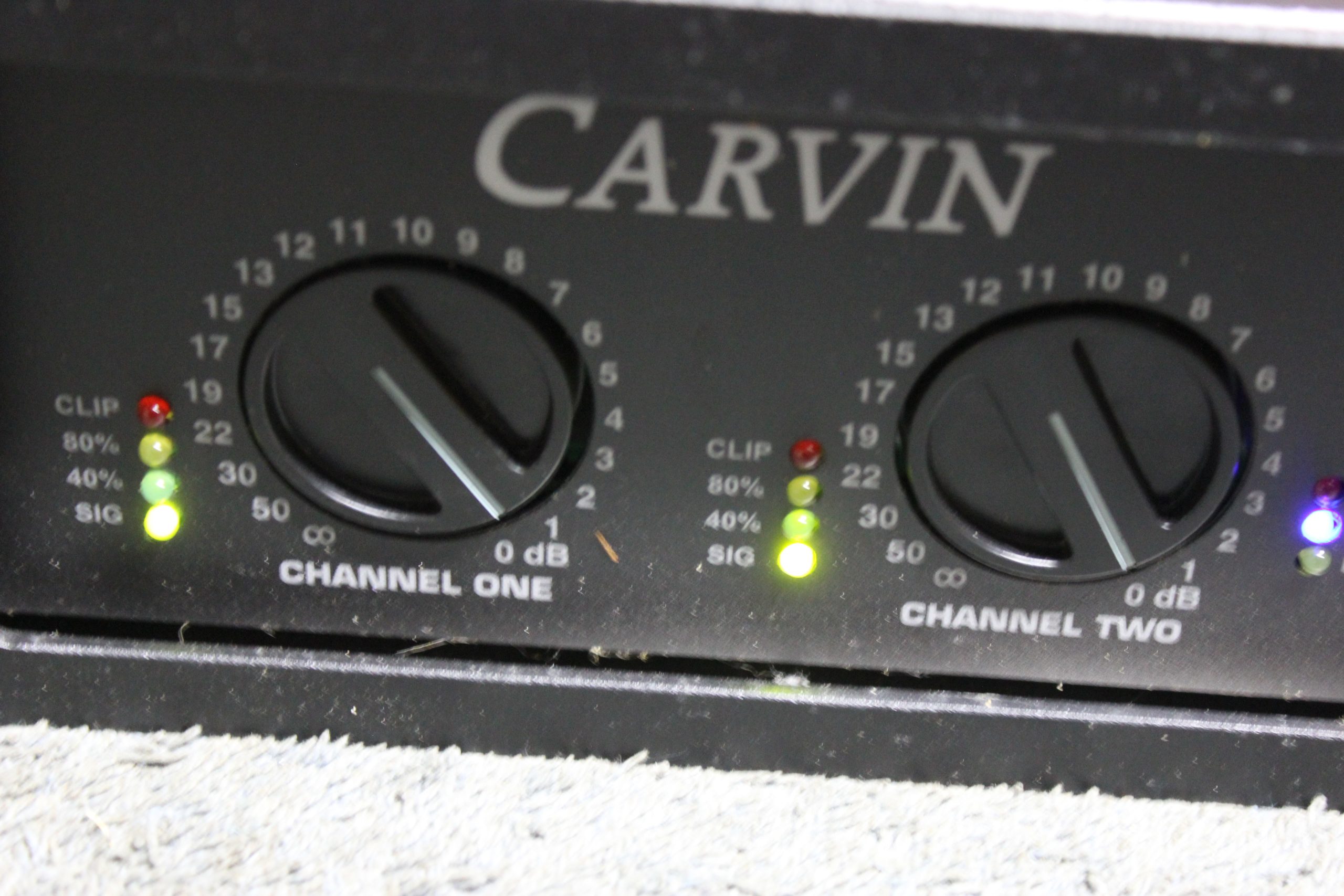 This is a very nice Carvin stereo power amp for pa or what ever you want to use it for. This unit puts out 700 watts at 4 ohms per channel and 400 watts at 8 ohms stereo and 1100 watts bridge mono at 8 ohms and 2000 watts at 4 ohms. This unit is in very good working condition and shows little signs of age, see photos for they are part of the description. We will let this unit go for $300.00 Local Pick Up Only (No Shipping)