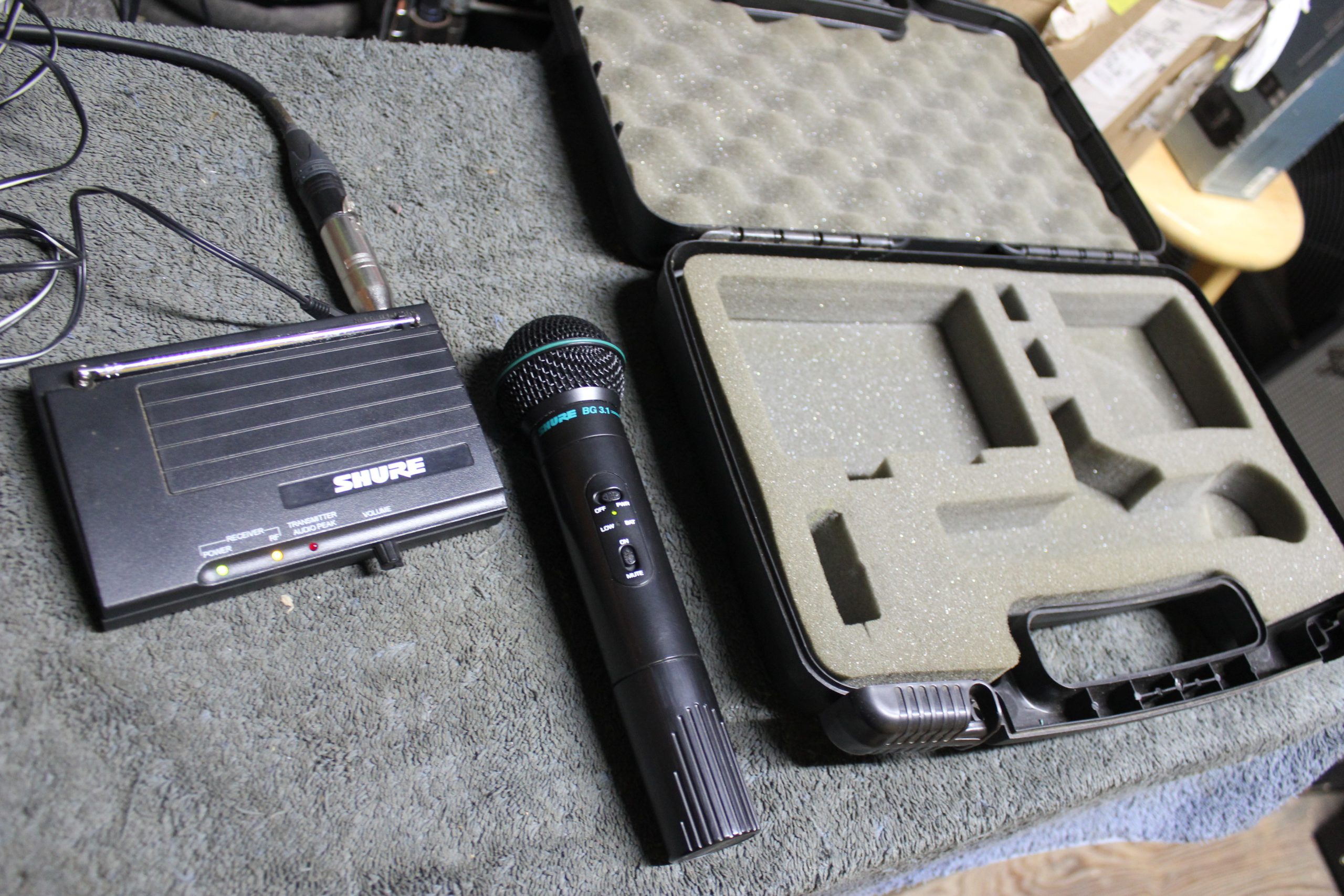 This is a shure heat held wireless transmitter and receiver that are in goo working order. comes with a case and power supply. See photos for they are part of the description. We will let this unit go for $95.00 plus shipping (US Only) or in store local pick up.
