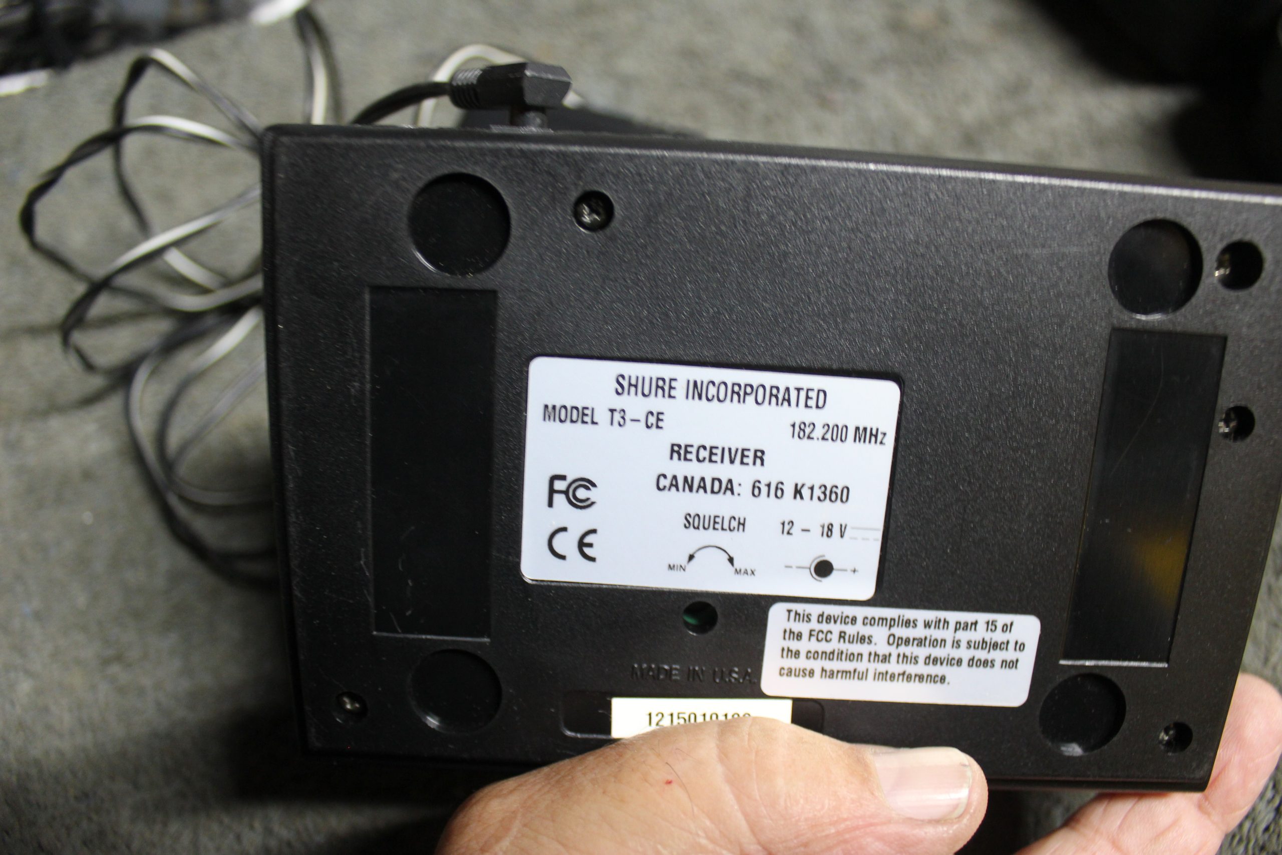 Shure Wireless T3-CE Reviver/ T2-CE Handheld Frequency. 182.200mhz